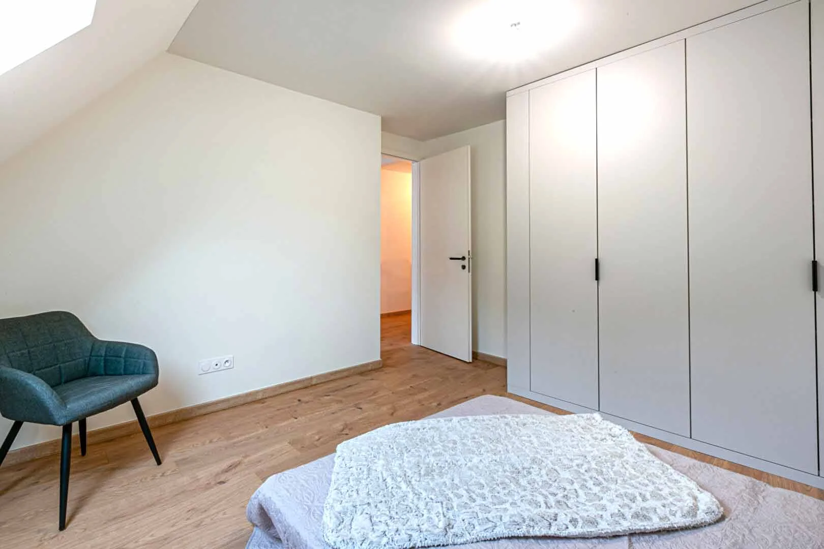 De plus il nous a demandé d’ajouter un étage pour la création d’une suite parentale comprenant une chambre et une salle de bain avec des rangements.